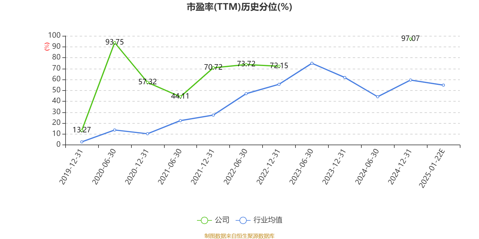 以本次披露业绩预告均值计算,公司近年市盈率(TTM)图如下所示: